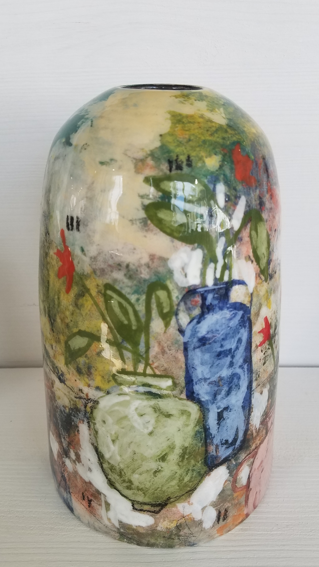Nous travaillons sur une production de pièces uniques en faïence décorée. Les pièces sont tournées, modelées à la main ou montées à la plaque, concernant le décor, nous sommes principalement inspirés par la bande dessinée et le graphisme il se fait à l’aide d’oxydes, engobes, colorants, crayons céramiques… Installés depuis 2005, nous participons à de nombreux marchés de potiers et salons métiers d’art.